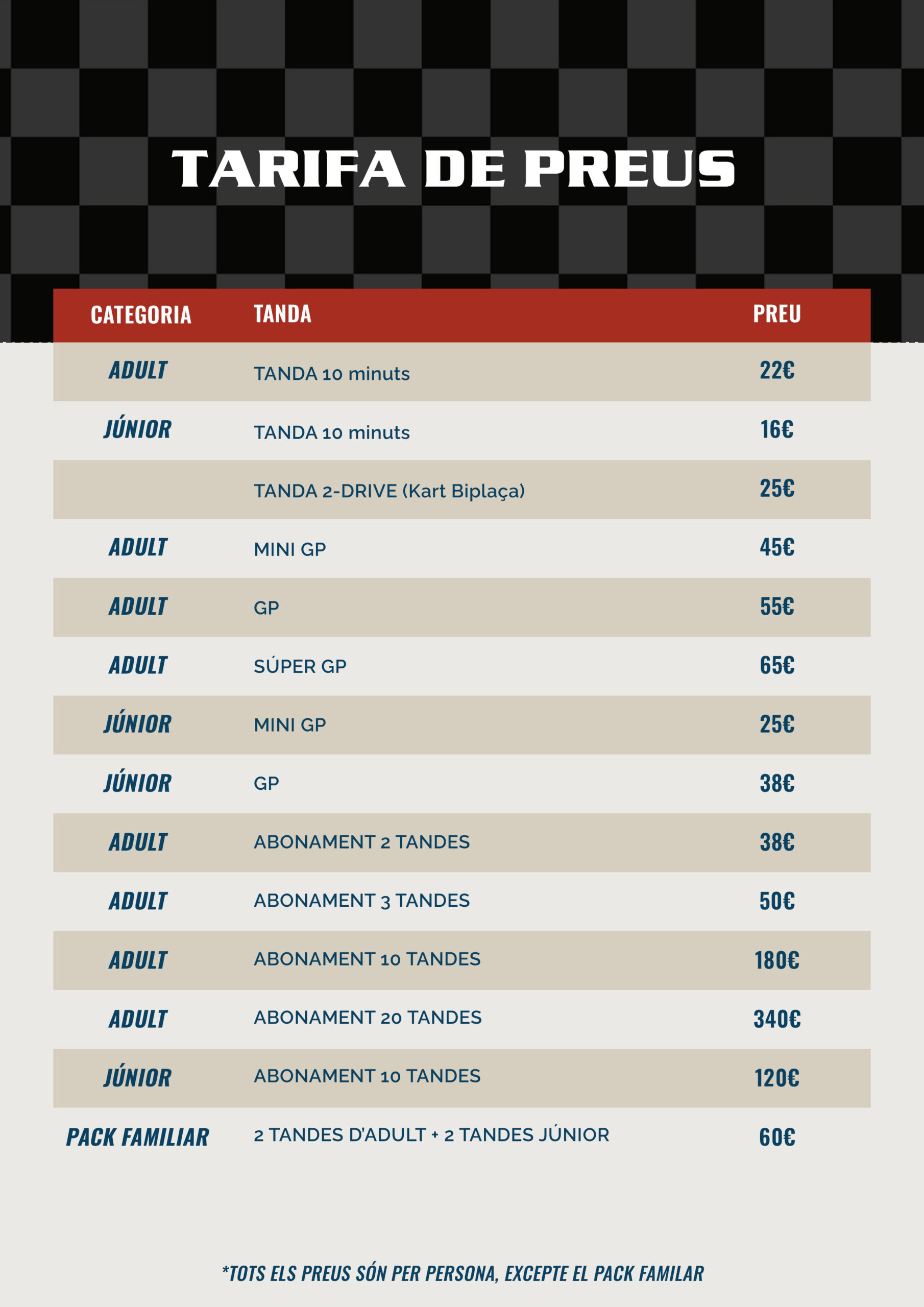 La celebració d’aniversari inclou únicament l’activitat de pista.